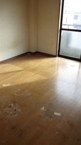 昨年アパートの階上の人が漏水事故を起こされたお客様の放置されたままの部屋の片付けをお引き受けします。