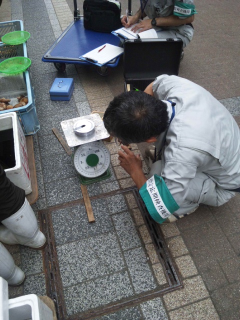 昨日夕方、新潟の古町の露天の秤を検定しているところに出くわした。