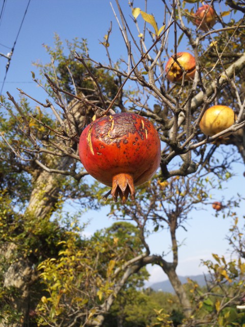 透き通る青空と、石榴の赤がとても印象的な一枚です。